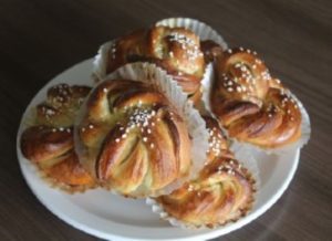 Ingredients: flour, milk, butter, sugar, cardamom, yeast, egg