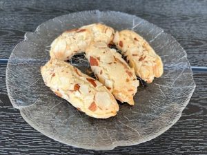Ingredients: almond flour, sugar, egg white, almond shavings